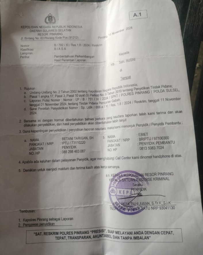 Keadilan tidak boleh dibiarkan mati hanya karena aparat penegak hukum memilih diam. Negara wajib hadir membela rakyat kecil yang hak-haknya dirampas di depan mata. Bila Polres Pinrang terbukti tidak profesional, maka bukan hanya Kapolres yang layak dicopot, tetapi seluruh jajaran yang ikut membiarkan praktik kebiadaban hukum ini harus ditindak.